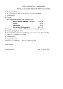 Town & Poors CHARITY Field AGENDA Thu 17.01.19
