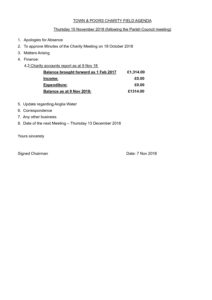 T & P CHARITY Field AGENDA Thu 15 Nov 18
