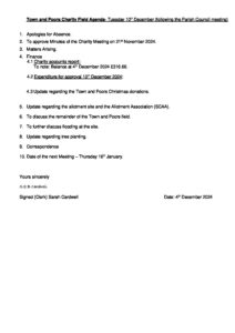 Town & Poors CHARITY Field AGENDA 10th December 2024