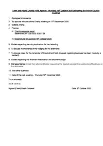 Town & Poors CHARITY Field AGENDA 15th October 2020