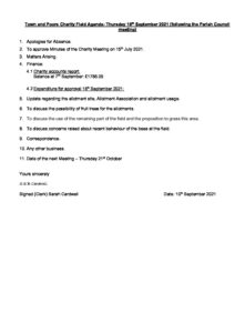 Town & Poors CHARITY Field AGENDA 16th September 2021