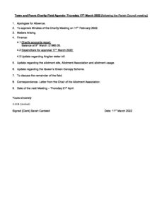 Town & Poors CHARITY Field AGENDA 17th March 2022