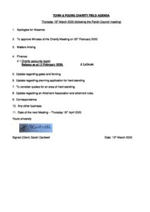 Town & Poors CHARITY Field AGENDA 19th Mar 2020
