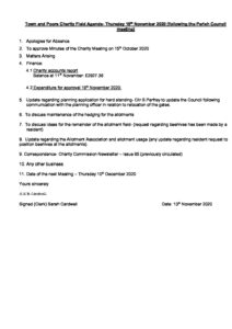 Town & Poors CHARITY Field AGENDA 19th November 2020