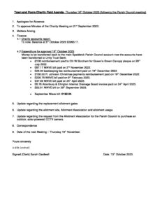 Town & Poors CHARITY Field AGENDA 19th October 2023