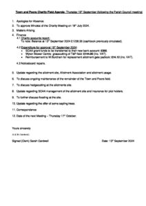 Town & Poors CHARITY Field AGENDA 19th September 2024