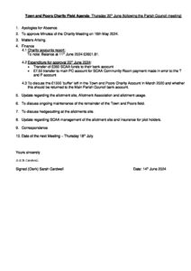Town & Poors CHARITY Field AGENDA 20th June 2024