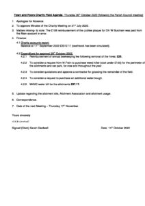 Town & Poors CHARITY Field AGENDA 20th October 2022
