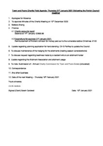 Town & Poors CHARITY Field AGENDA 21st January 2021