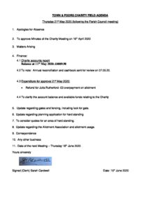 Town & Poors CHARITY Field AGENDA 21st May 2020.