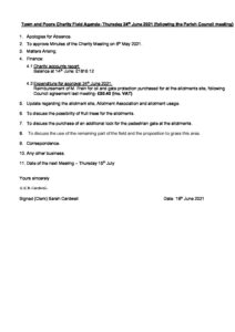 Town & Poors CHARITY Field AGENDA 24th June 2021