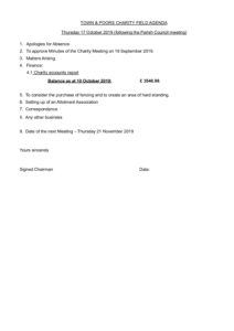 Town & Poors CHARITY Field AGENDA Thu 17.10.19